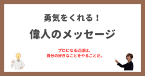はじめに 自分で自分を育てていこう!習慣化コーチのこんちゃんです。 今日は月曜日、「勇気をくれる!偉人のメッセージ」を1つ選んでご紹介していきたいと思います! 今週の偉人のメッセージ プロになる近道は、自分の好きなことを […]