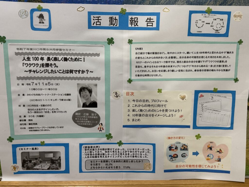 またこれ以外に最近やった普段やらないことは、「手作りのパネル作成」。実は明日相談コーナーを出店するイベントで、11月に実施したセミナーの報告をパネルにしてまとめる係になったのです。
