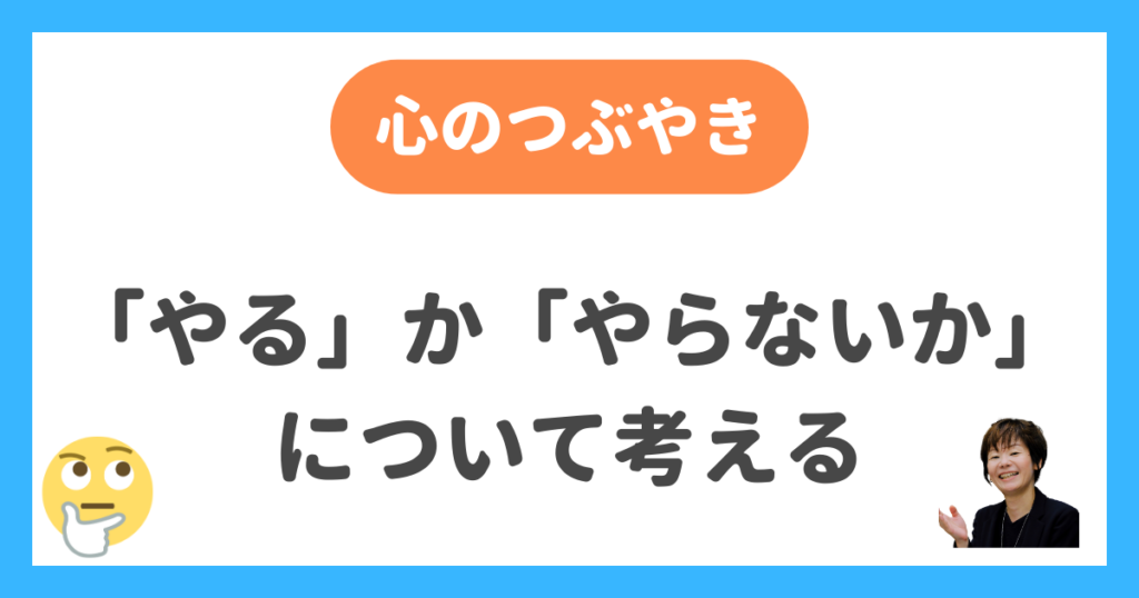 今日は木曜日、心のつぶやきの日。最近よく考える「やるかやらないか」について、今思っていることを書いてみたいと思います。