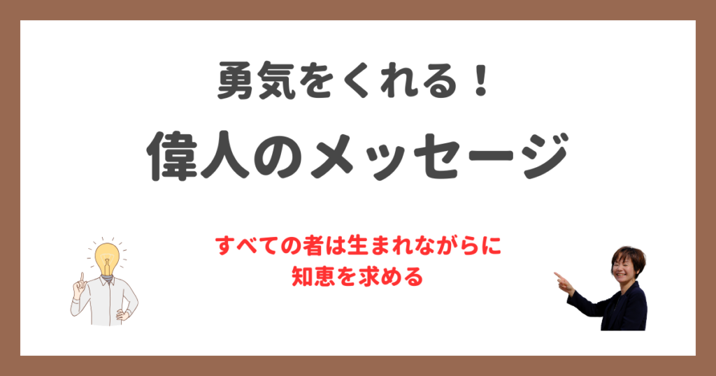 今日は月曜日、「勇気をくれる!偉人のメッセージ」を1つ選んでご紹介していきたいと思います!
