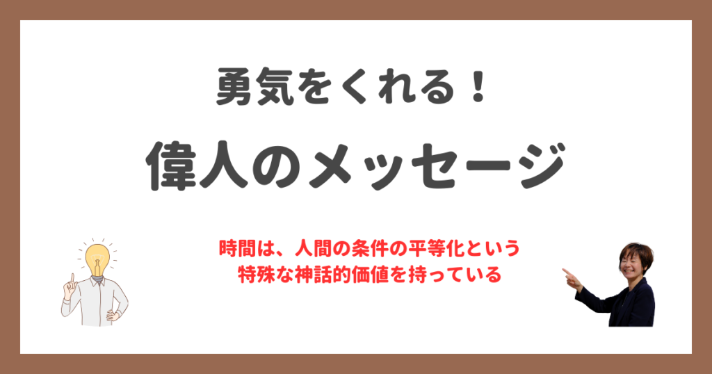 時間は、人間の条件の平等化という特殊な神話的価値を持っている