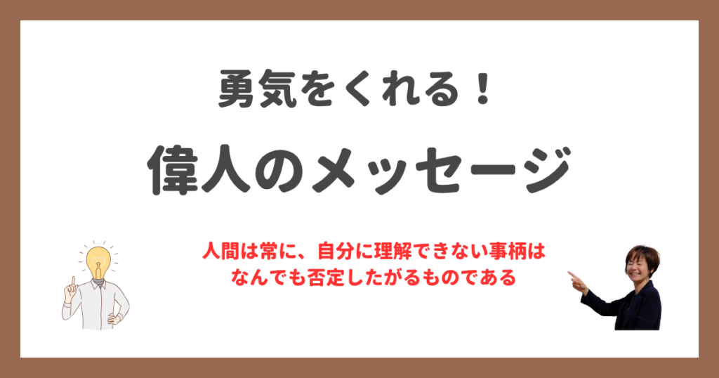 今日は月曜日、「勇気をくれる!偉人のメッセージ」を1つ選んでご紹介していきたいと思います!