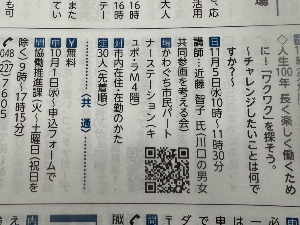 川口市男女共同参画セミナーのお知らせ(11/5)